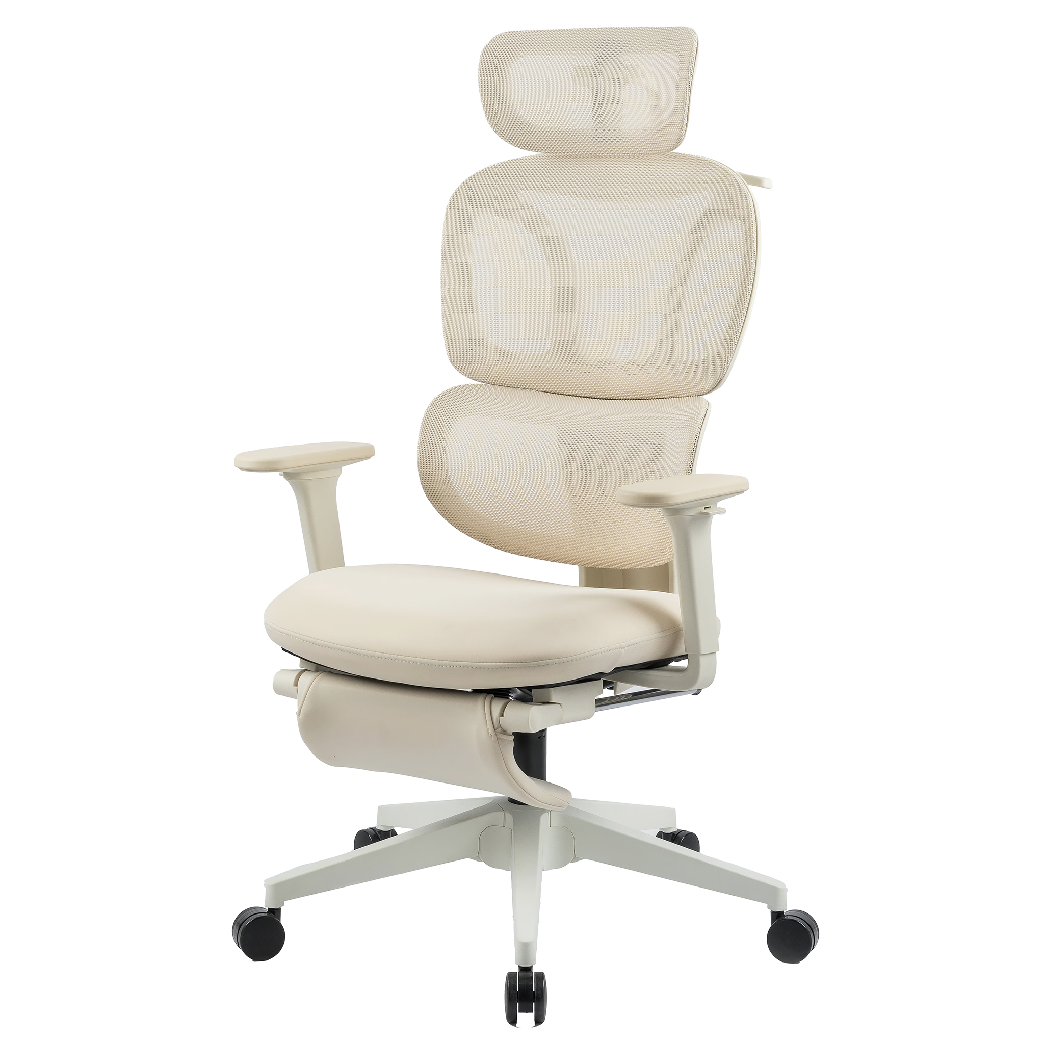 This ergonomic chair is designed to support the natural curves of the female body, providing dynamic back and lumbar support. It features adjustable armrests, a 2D headrest, and a retractable footrest, all tailored to enhance comfort in multiple sitting positions.