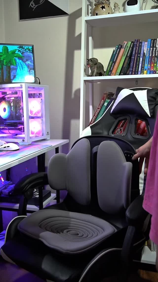 The curved backrest wraps around your sides, providing cradling support that reduces tension across the lumbar and mid-back—ideal for long sitting sessions.